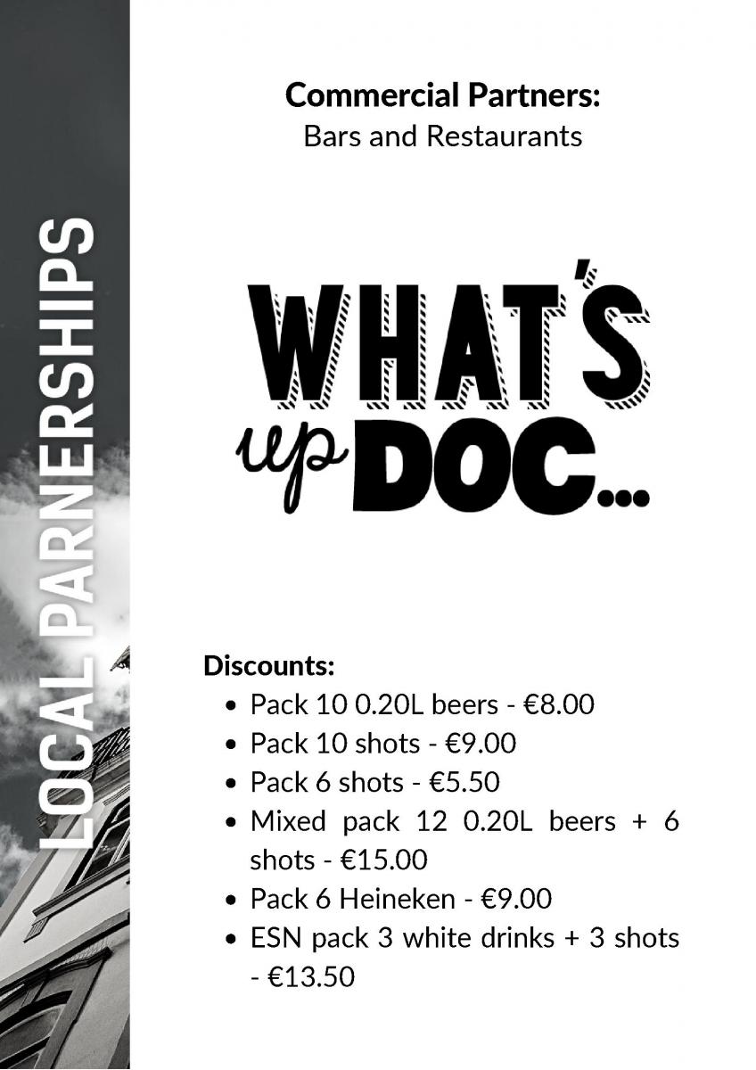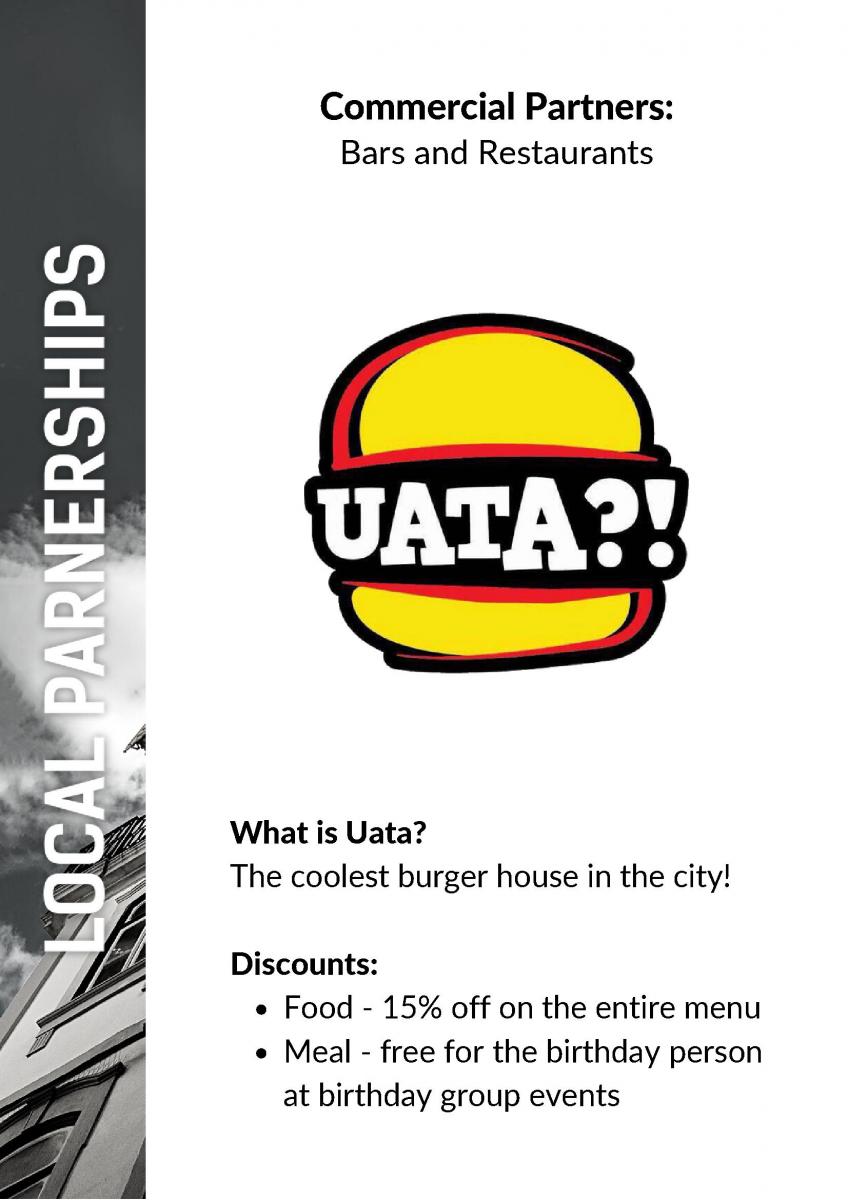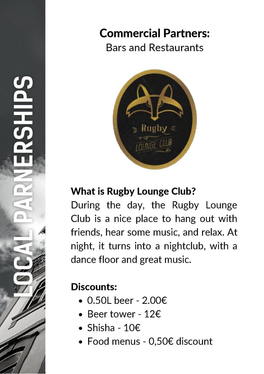 Our commercial partners range from clubs, bars and restaurants; to: outdoors activities & entretainment all the way to hotels and travelling transportation!