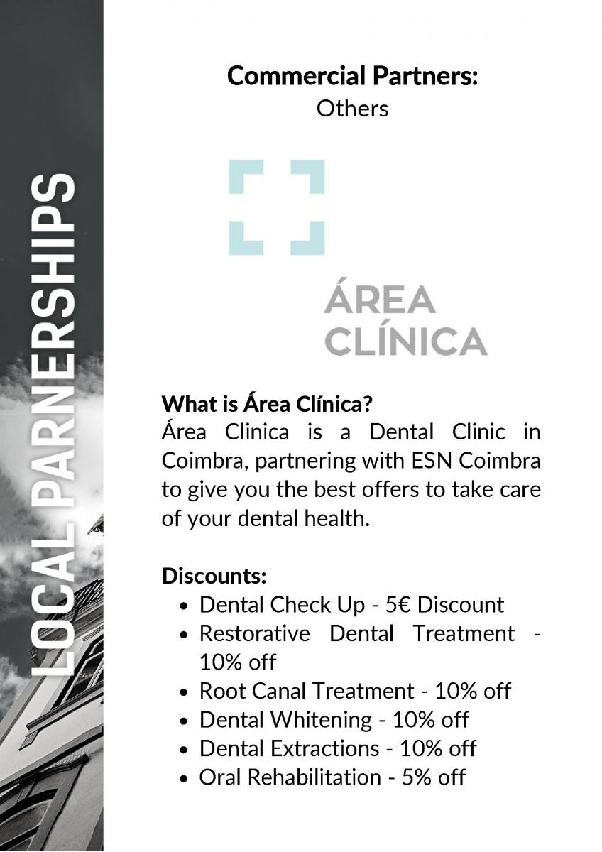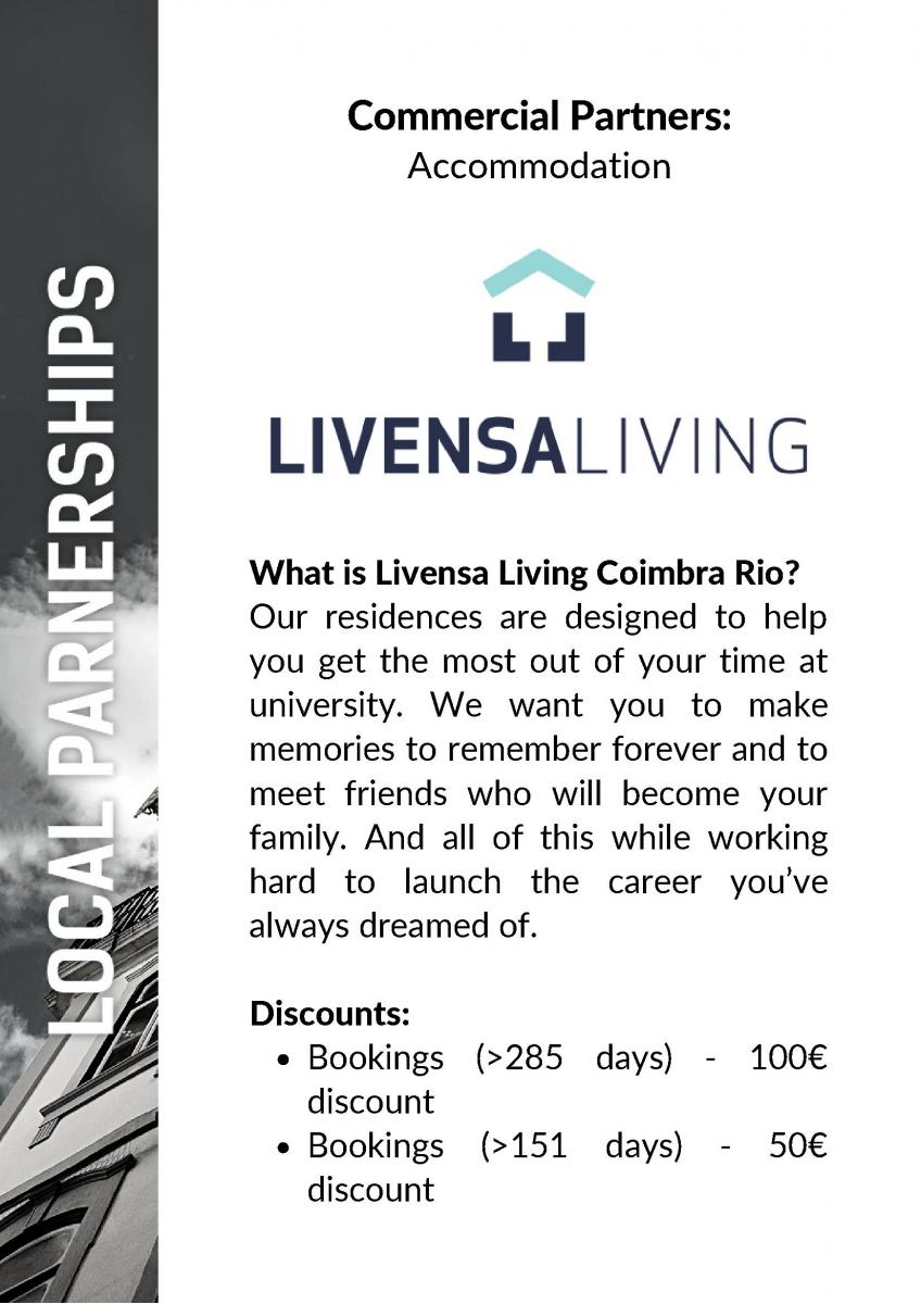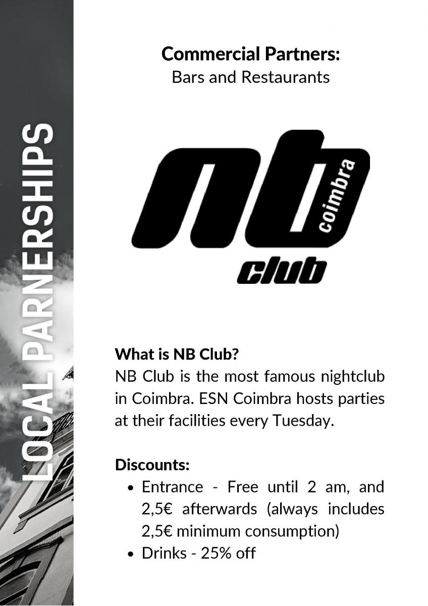 A ESN Coimbra encontra-se plenamente motivada em proporcionar as melhores ofertas e descontos aos estudantes estrangeiros na sua cidade. Esta parte do website baseia-se, portanto, na convicção de que é possível estabelecer parcerias que permitam beneficiar tanto os estudantes erasmus, como os nossos parceiros empresariais.
