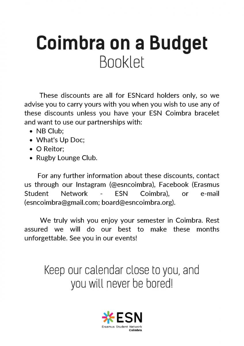 Check out ESN Coimbra's partnerships booklet and come find out all of the amazing value that you can get with your ESNcard!